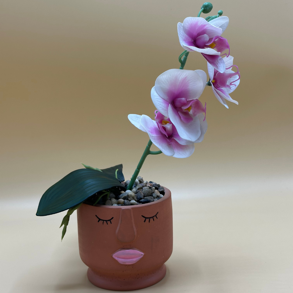 Artistic Face Planter with Elegant Faux Pink & White Orchid