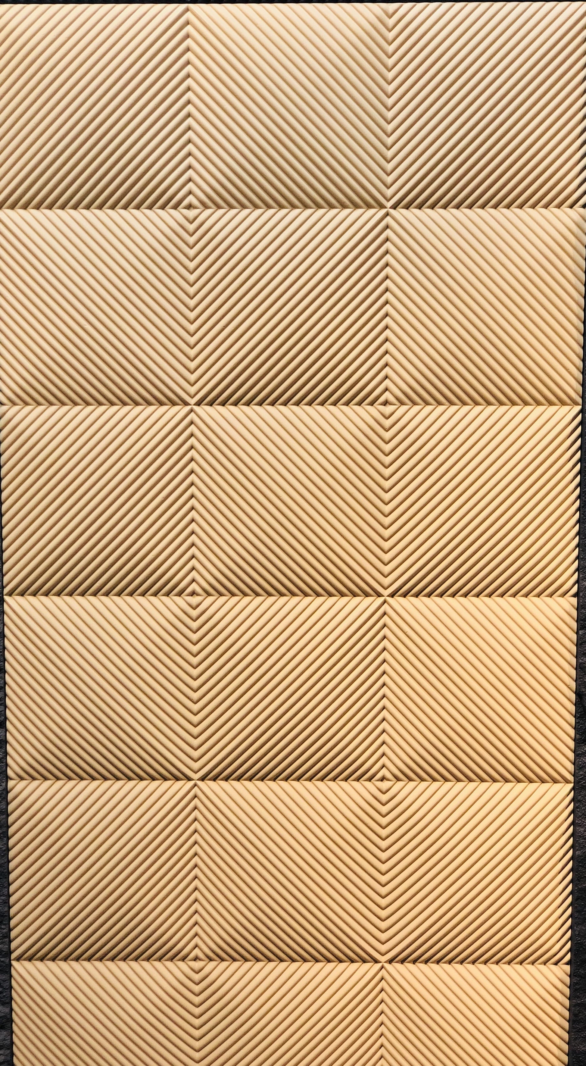 Elevate your interior design with this contemporary wall panel featuring a dynamic geometric pattern of diagonal ribs. The subtle off-white or light beige hue offers a versatile and sophisticated backdrop, while the alternating directions of the ribbed texture create an engaging visual effect that plays with light and shadow. This panel is perfect for adding modern elegance and a sense of movement to accent walls, feature areas, or commercial spaces.