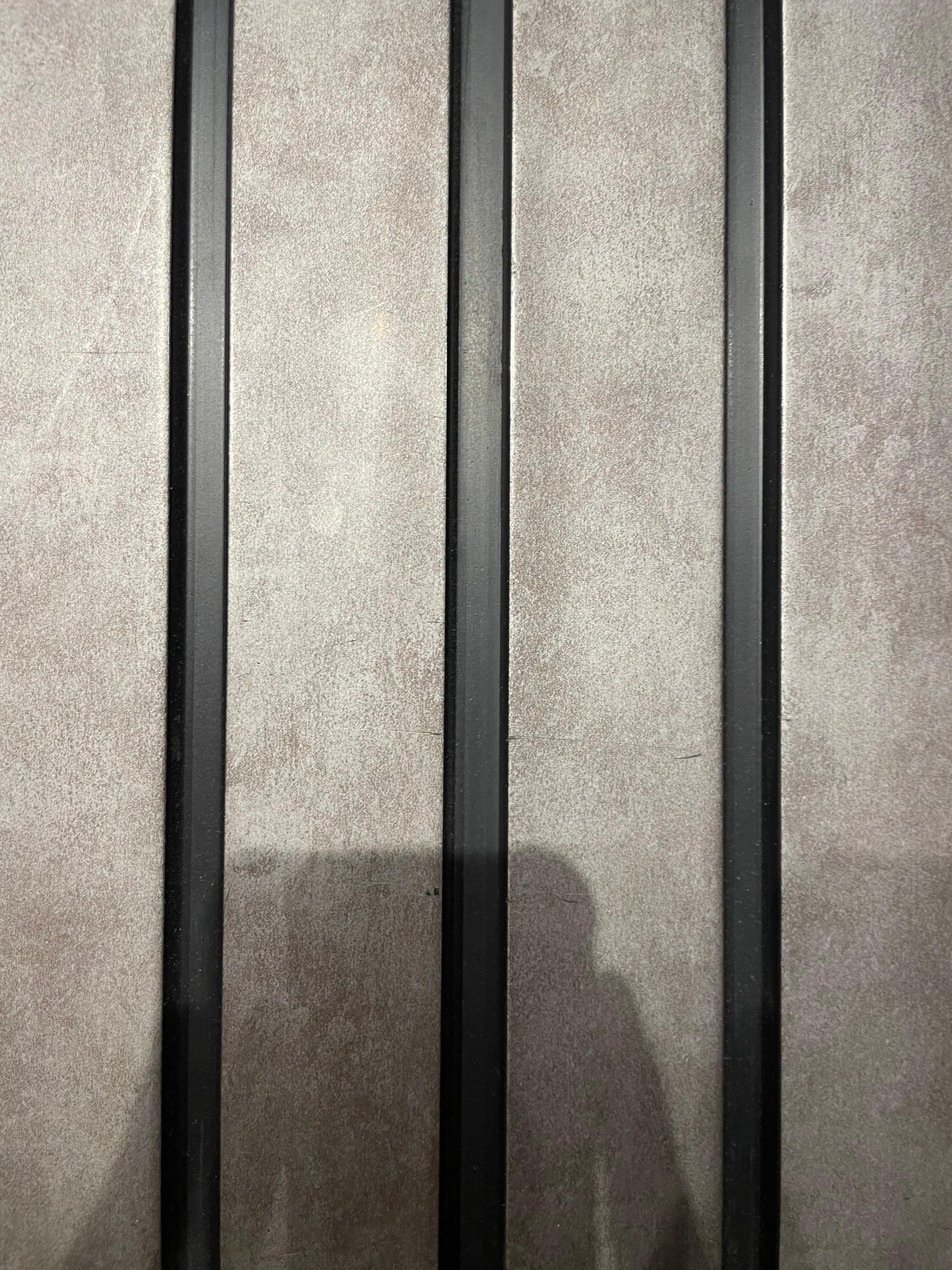 Elevate your interior design with our Contemporary Textured Wall Panel, a sophisticated fusion of modern aesthetics and refined detailing. This exquisite panel features light-toned, possibly stone or concrete-effect, vertical segments that offer a subtle yet rich texture. These segments are artfully separated by sleek, dark (black) vertical grooves, which provide a striking contrast and enhance the panel's linear appeal. Adding to its unique character, the entire arrangement is elegantly framed by thicker, golden or light wood-toned vertical borders, lending an opulent and finished look.