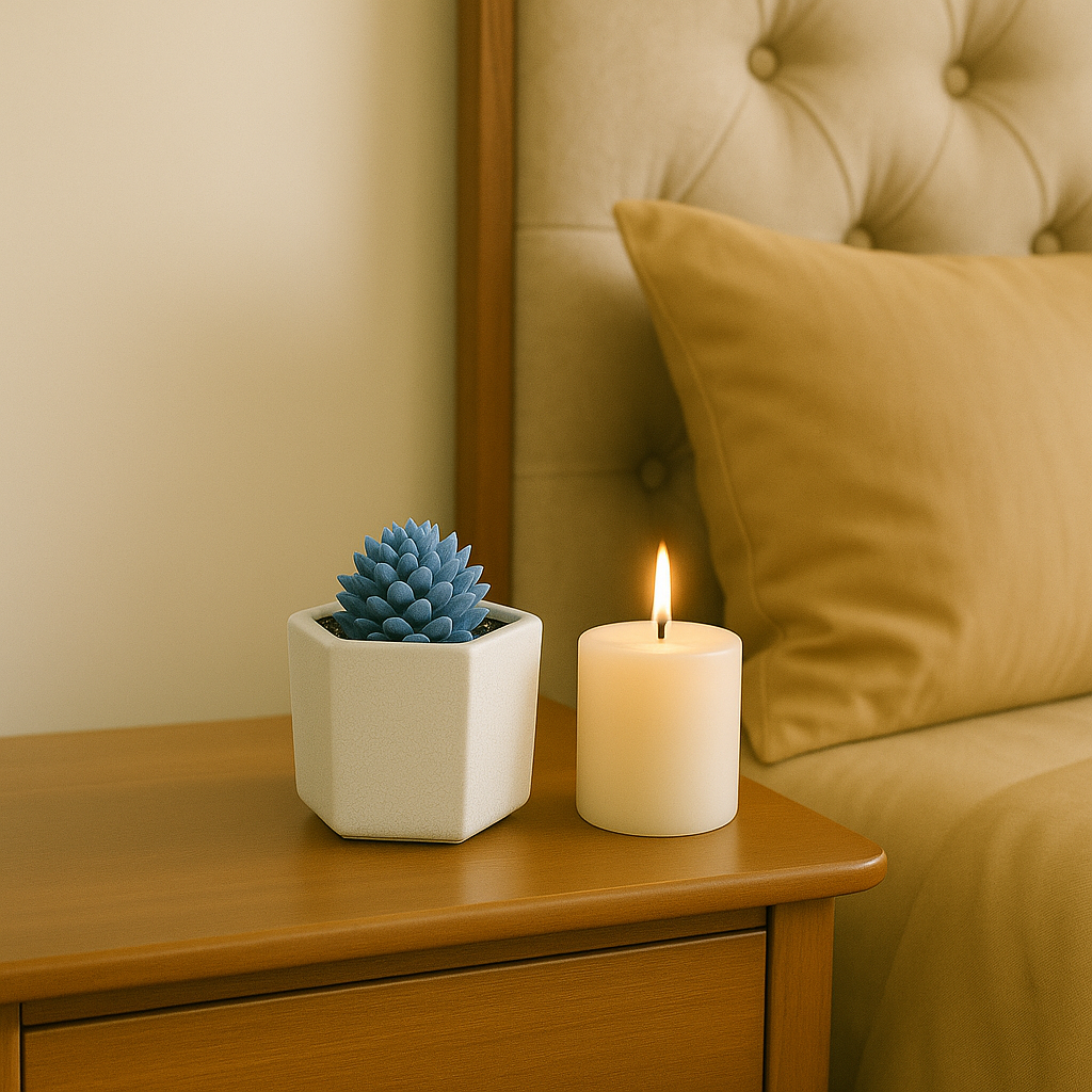 Modern Hexagonal Pot with Blue Artificial Succulent