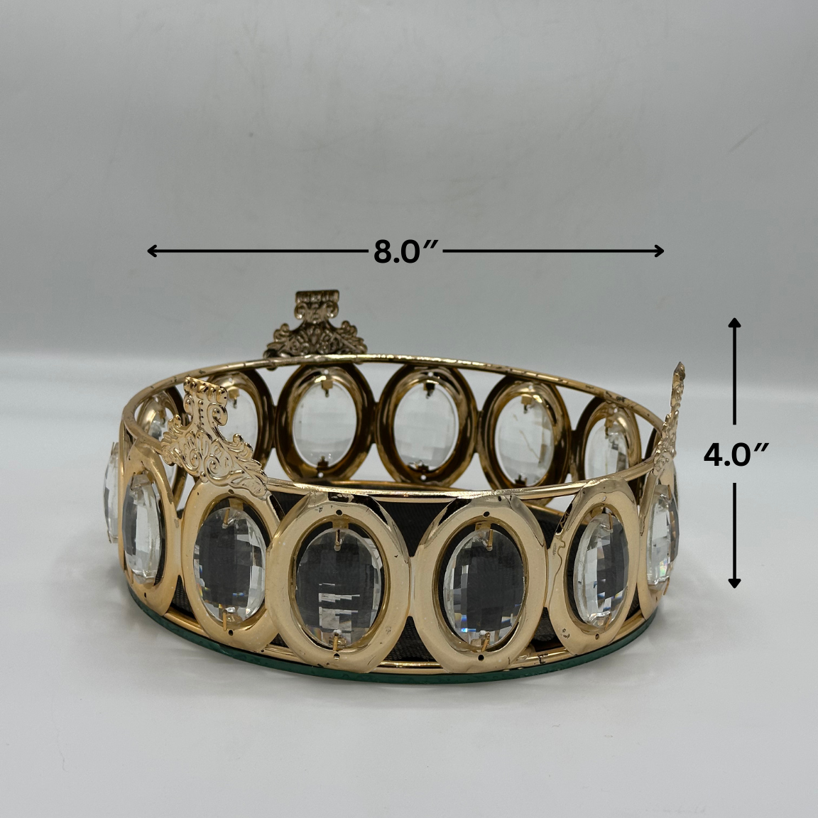 Add a touch of majestic glamour to your home décor with this exquisite set of two gold metal trays in a regal crown shape. Each tray features an ornate gold framework adorned with sparkling oval crystal accents, creating a truly luxurious and eye-catching display. The nesting design allows for versatile use and convenient storage.