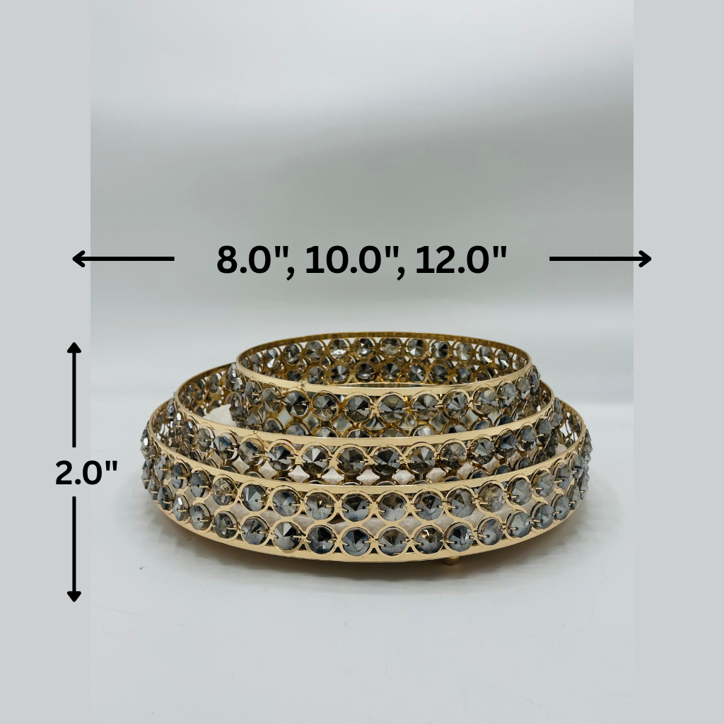 Perfect for displaying candles, jewelry, cosmetics, serving small appetizers, or simply as elegant decorative pieces, these trays will elevate the style of any coffee table, vanity, shelf, or dining table. The combination of the warm gold metal and the dazzling crystals creates a truly captivating visual effect. This set also makes a wonderful and stylish gift for those who appreciate elegant home accents and a touch of sparkle.
